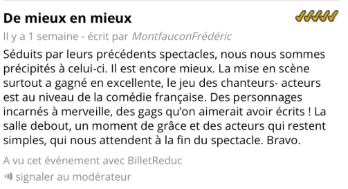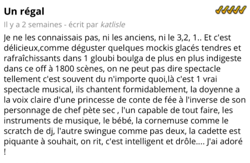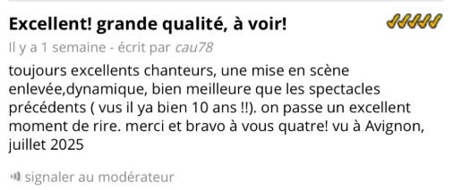 Spectacle vu le 6 juillet 2025